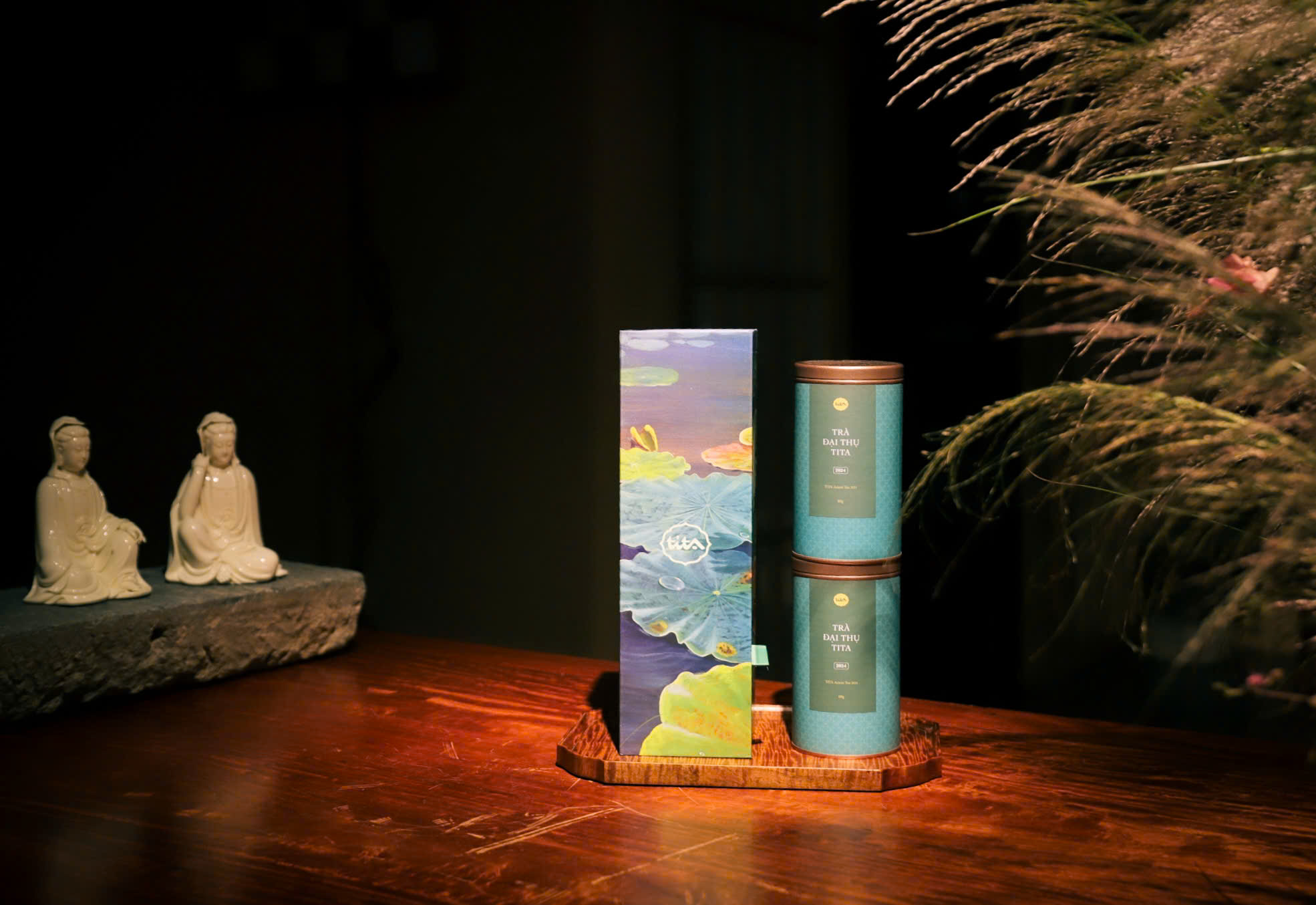 Được đặt trong hộp quà TITA trang trí bằng tranh vẽ sen – biểu tượng của sự thanh khiết, tao nhã như tâm hồn người Việt Nam – Bộ Quà Tặng Trà Đại Thụ TITA là món quà mang trọn tinh thần thuần khiết của đất trời gửi tặng những người bạn quý.